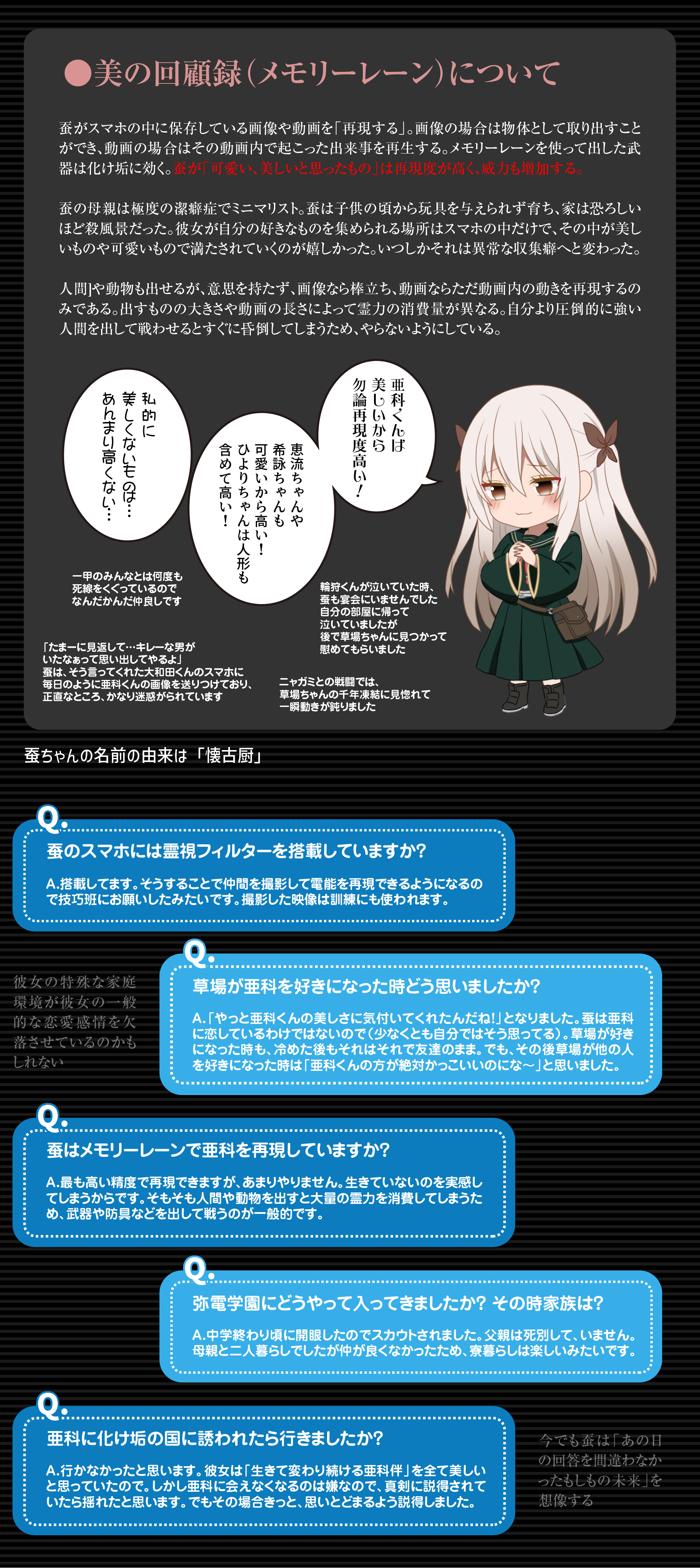 蚕はあの日の選択を後悔し、「私も亜科くんと一緒に行けばよかったのかな?」と涙したが、輪狩たち一甲のメンバーは「それは違う」と蚕を諭す。