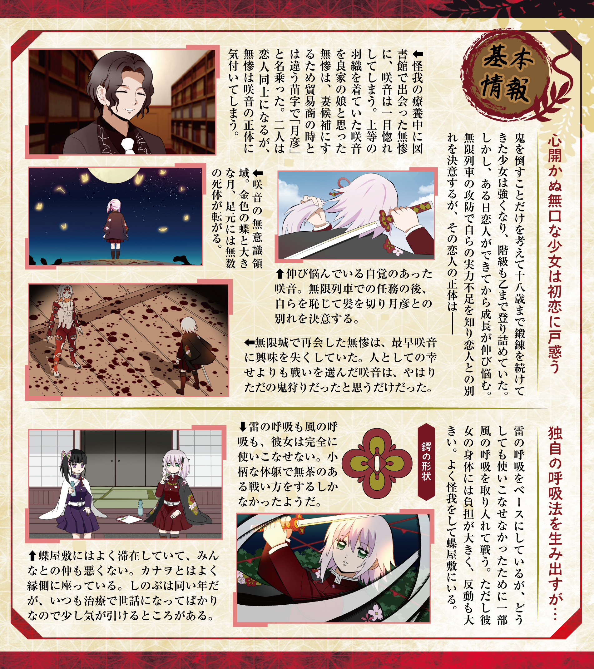 咲音は月彦との結婚を意識し始めるが、無限列車での任務で煉獄の死を目の当たりにし、自らの失態を恥じて髪を切る。