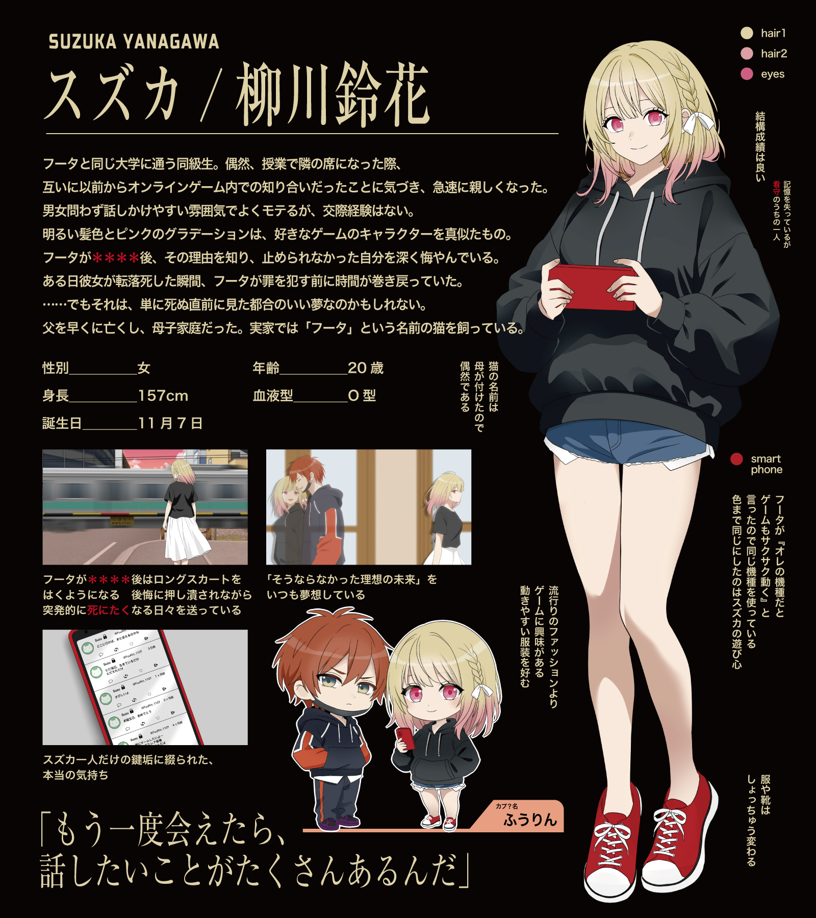 しかし当時、フータはネット上で誹謗中傷を繰り返していた。スズカがそれに気付き問い詰めたことで、二人は口論となる。